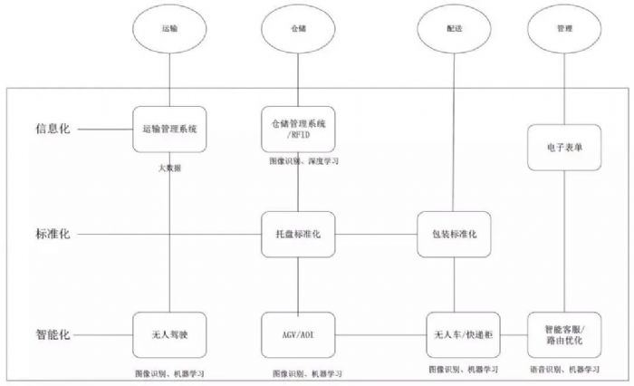 人工智能、大数据、物联网、云计算、5G移动通信技术以及区块链等前沿科技将构成新一代物流技术体系。随着技术的快速产品化,成本的指数级下降,政策的鼓励,中国物流行业将迎来全面智能化时代。人工智能作为引领未来的战略性技术,在丰富的应用场景和海量的数据支撑下,可望引领新一代物流技术的发展方向。